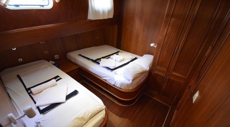 1 Masterkabine, 6 Doppelkabinen, 2 Dreierkabinen, 1 Masterkabine, 6 Doppelkabinen, 2 Dreierkabinen, stilvoll und komfortabel, mit eigener Dusche, WC und Klimaanlage, unsere Yacht hat 9 Kabinen.