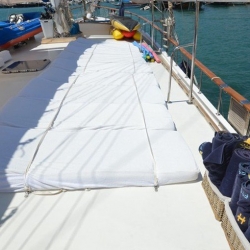 Wir können Ihnen während Ihres Urlaubs auch ohne Ihr Zutun Vollpension anbieten. In diesem Fall können Sie sich für eines unserer Standard-, Luxus- oder Deluxe-Menüs entscheiden und einen Preis zwischen 45 und 65 Euro pro Person und Tag zahlen, um einen All-Inclusive-Urlaub ohne alkoholische Getränke zu verbringen. Sie können Ihre alkoholischen Getränke selbst mitbringen und an Bord bringen.