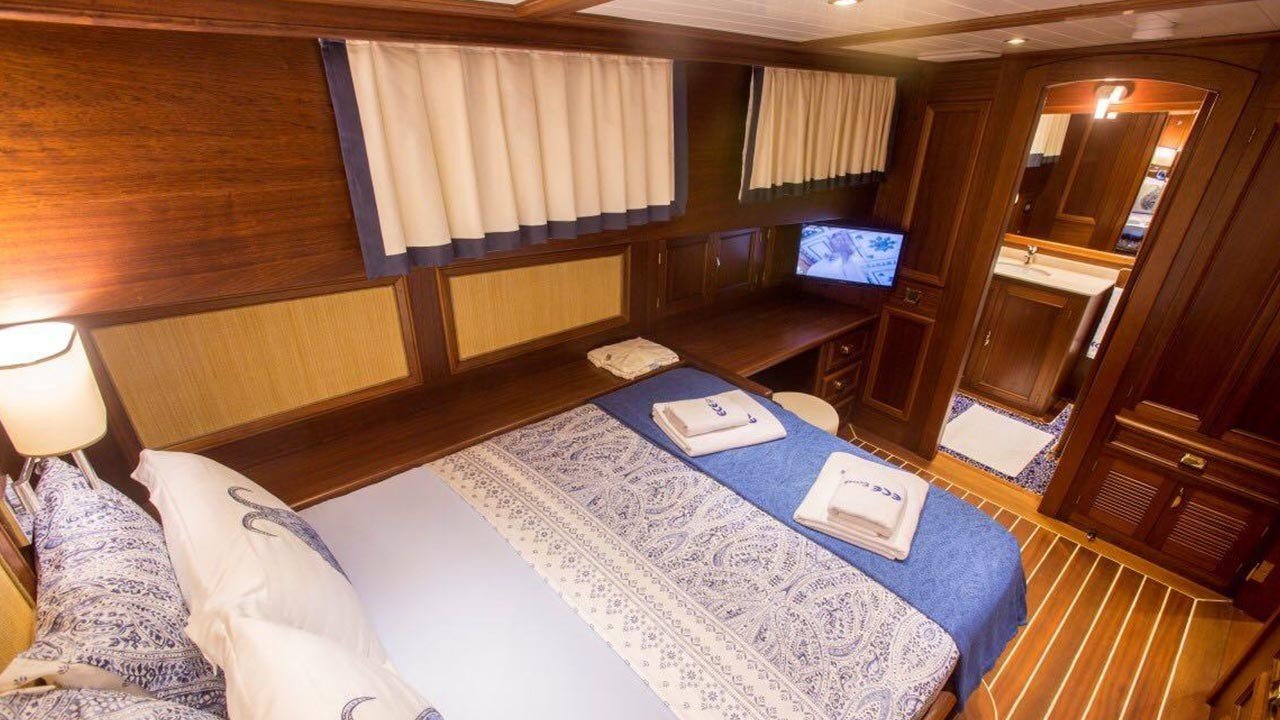Die Ece Berrak Gulet wurde entworfen, um Ihnen, unseren besonderen Gästen, ein außergewöhnliches blaues Kreuzfahrterlebnis zu bieten. Jedes Detail wurde sorgfältig durchdacht, um sicherzustellen, dass Sie mehr als den Komfort eines Fünf-Sterne-Hotels in den einzigartigen Gewässern des Mittelmeers und der Ägäis erleben. Die Ece Berrak Gulet, die seit 2008 (Refit 2017) mit einer hundertprozentigen Zufriedenheitsgarantie im Dienst steht, ist eine der bevorzugten Super-Luxus-Yachten ihrer Besucher mit zahlreichen Referenzen und wiederkehrenden Reservierungen. Die 33 Meter lange und 8 Meter breite Super-Luxus-Yacht bietet Platz für insgesamt 10 Gäste in 1 Master-, 2 Doppel- und 2 Twin-Kabinen. Alle Kabinen und die gesamte Yacht sind mit Klimaanlage für einen angenehmen Aufenthalt an heißen Sommertagen ausgestattet und verfügen über private Dusch- und WC-Anlagen in jeder Kabine. Alle Kabinen haben TV, DVD und Musikanlage.
