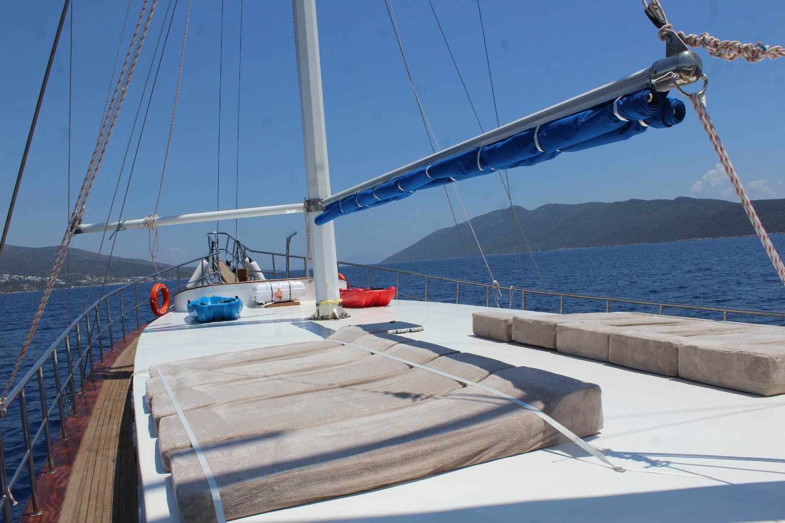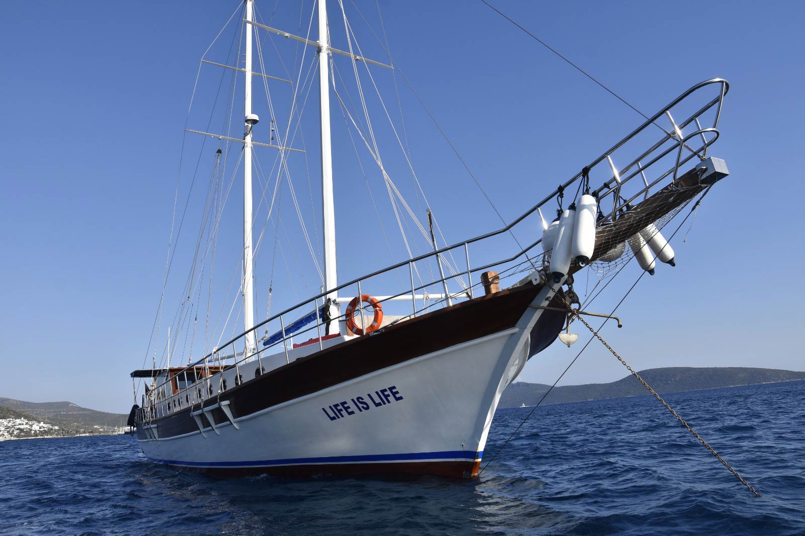 Unsere Yacht verfügt über 5 Kabinen, darunter 1 Masterkabine, 2 Doppelkabinen, 2 Zweibettkabinen, stilvoll und komfortabel, mit eigener Dusche, WC und Klimaanlage. Sie werden sich sicher fühlen in unseren bevorzugten blauen Kreuzfahrt Destinationen wie Bodrum, Marmaris, Fethiye, Gocek mit Life is Life Boot dank seiner Radio, GSM Telefon Navigationsgeräte.