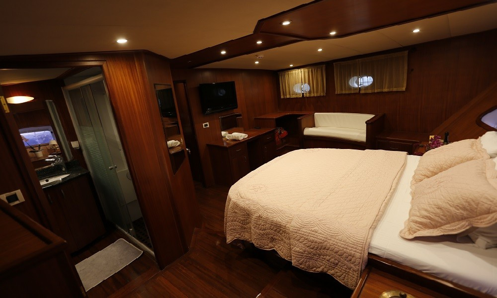 İlknur Sultan Gulet hat 2 Master-Kabinen, 2 Doppelkabinen, 2 Zweibettkabinen, die eleganter und komfortabler sind als jede andere mit eigenem WC und Klimaanlage und insgesamt 6 Kabinen.