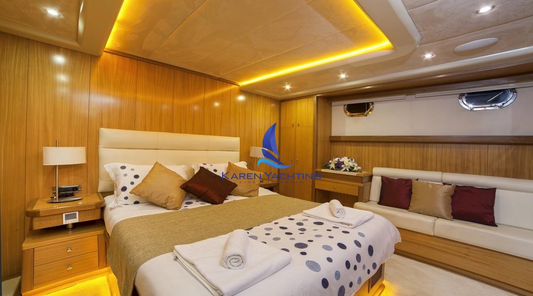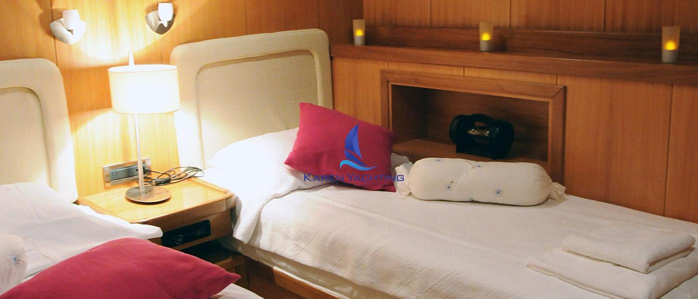 Justiniano Gulet ist eine Yacht mit 2 Master-Kabinen, 1 Doppelkabine, 1 Zweibett-Kabine, eleganter als jede andere und komfortabler als jede andere mit eigenem WC und Klimaanlage und insgesamt 4 Kabinen.