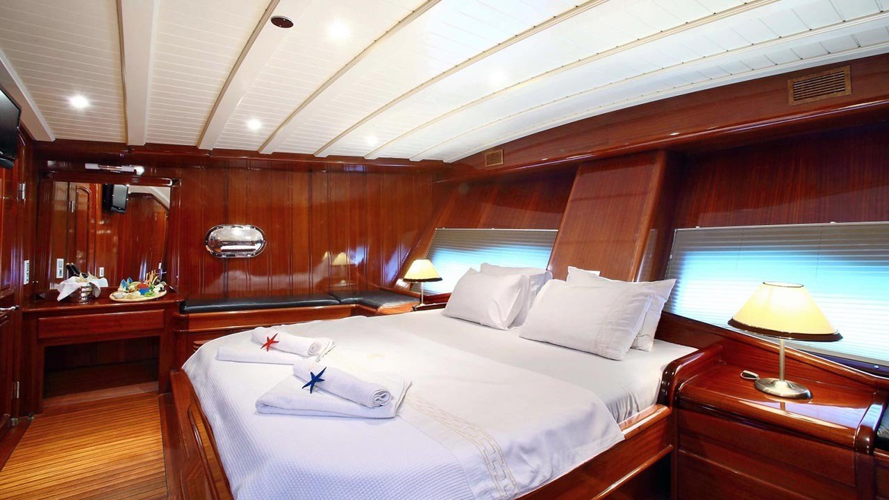 Kaya Güneri Plus, eine 35 Meter lange und 7,45 Meter breite Super-Luxus-Yacht, bietet Platz für insgesamt 12 Gäste in 2 Master-, 2 Doppel- und 2 Dreierkabinen. Alle Kabinen und die gesamte Yacht sind mit Klimaanlage für einen angenehmen Aufenthalt an heißen Sommertagen ausgestattet und verfügen über eine eigene Dusche und WC in jeder Kabine. Alle Kabinen haben TV, DVD und Musikanlage.