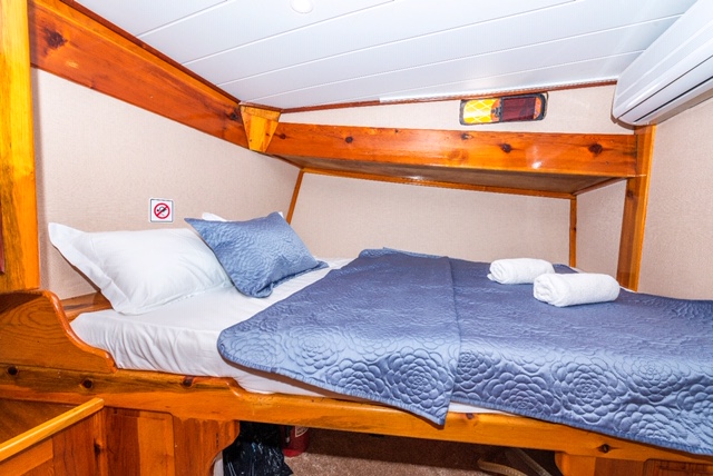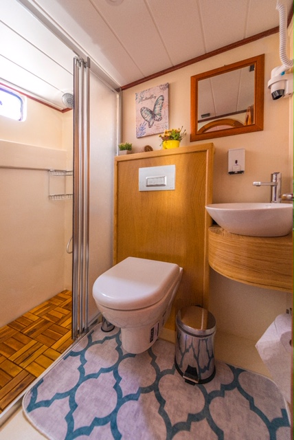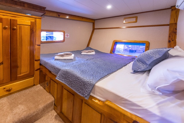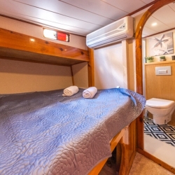 Nomade Gulet bietet Unterkunft für 12 Gäste in klimatisierten Kabinen, Nomade Yacht hat 6 Doppelkabinen. Jede Kabine hat ein separates WC und eine Dusche.