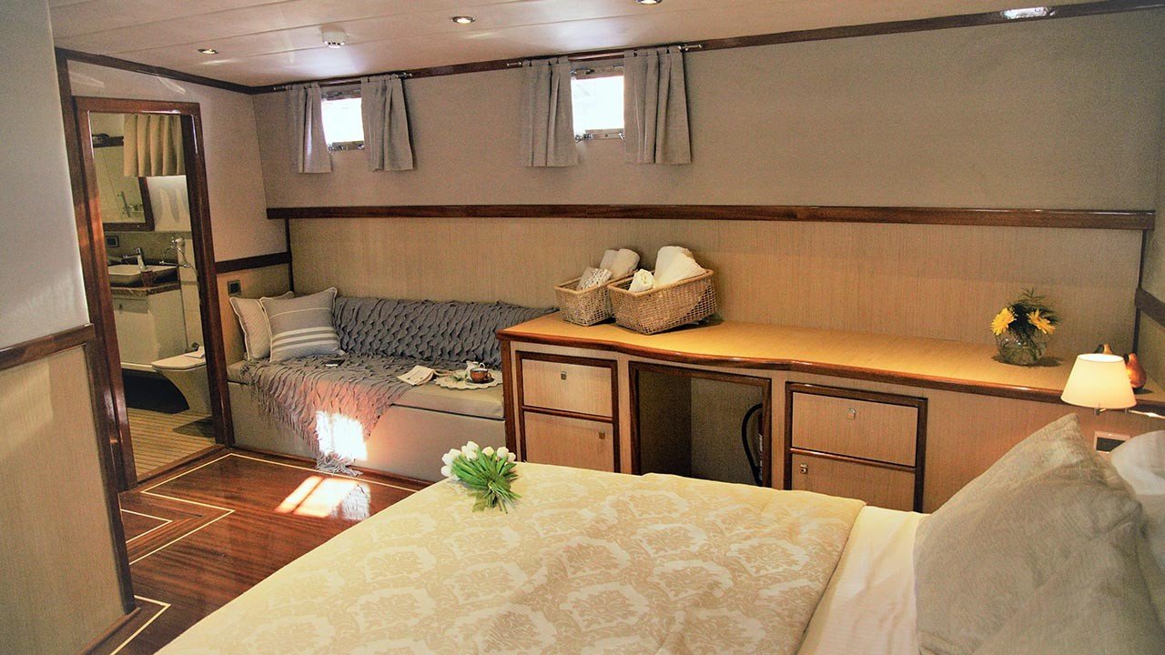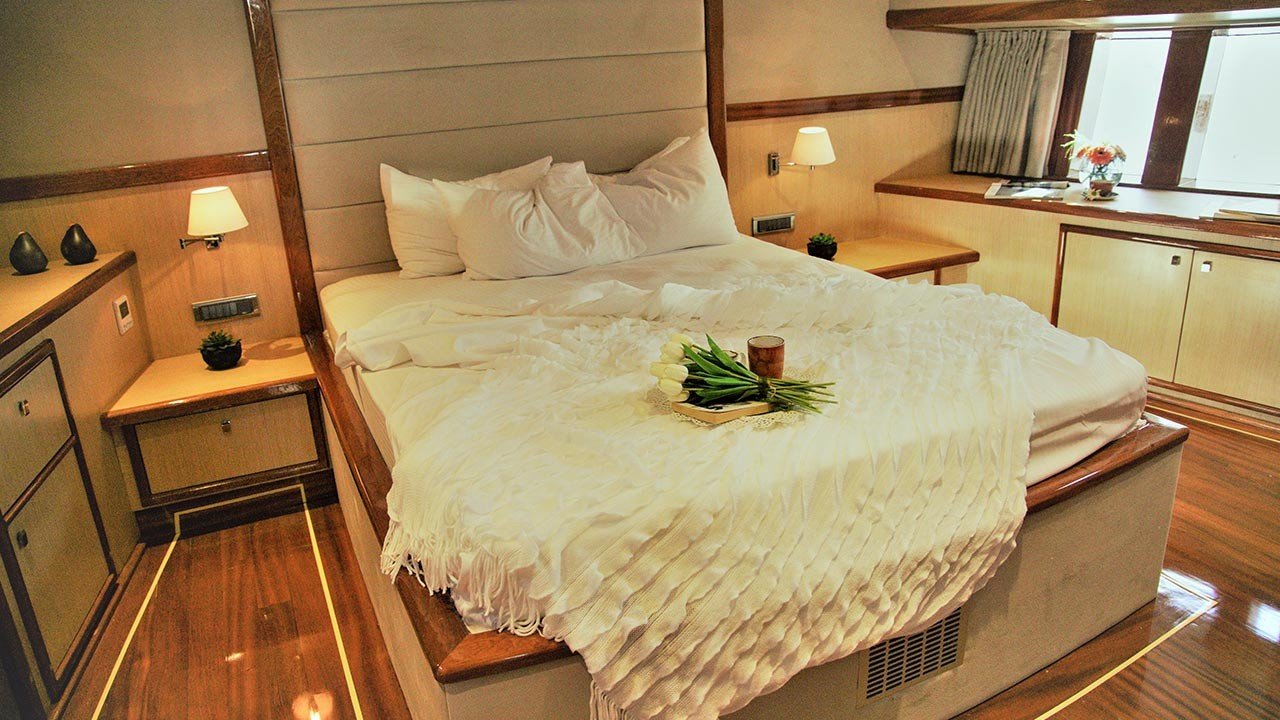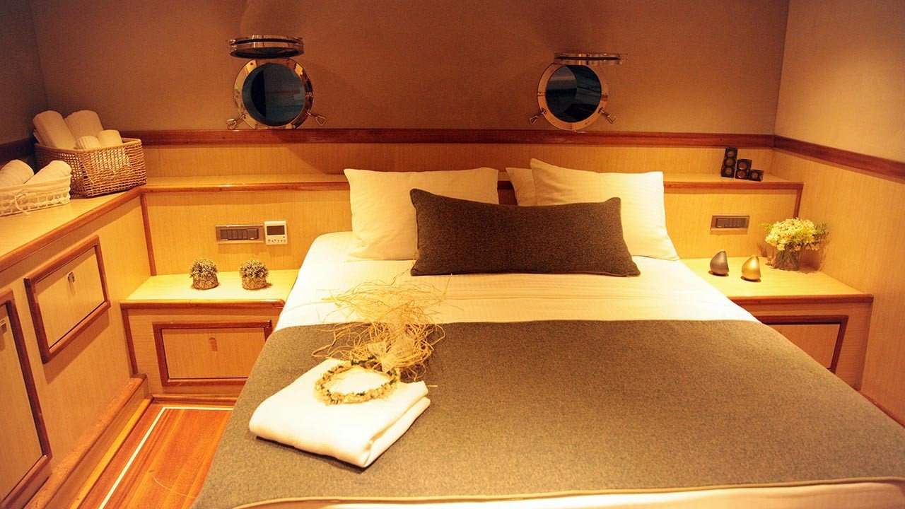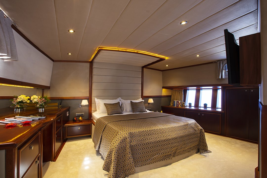 DieSegelyacht Perdue bietet einen sehr großen Innen- und Außenbereich für ihre Gäste. Die Gästekabinen der Yacht verfügen über ein eigenes Bad – WC, Klimaanlage, LED-TV, DVD-Player, Satelliten- und WI-FI-Anschluss (WI-FI-Anschluss ist nur in türkischen Hoheitsgewässern verfügbar). Das klimatisierte Wohnzimmer dieser glamourösen Gulet verfügt über eine sehr gemütliche Sitzecke und einen LED-Fernseher.