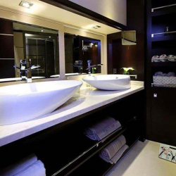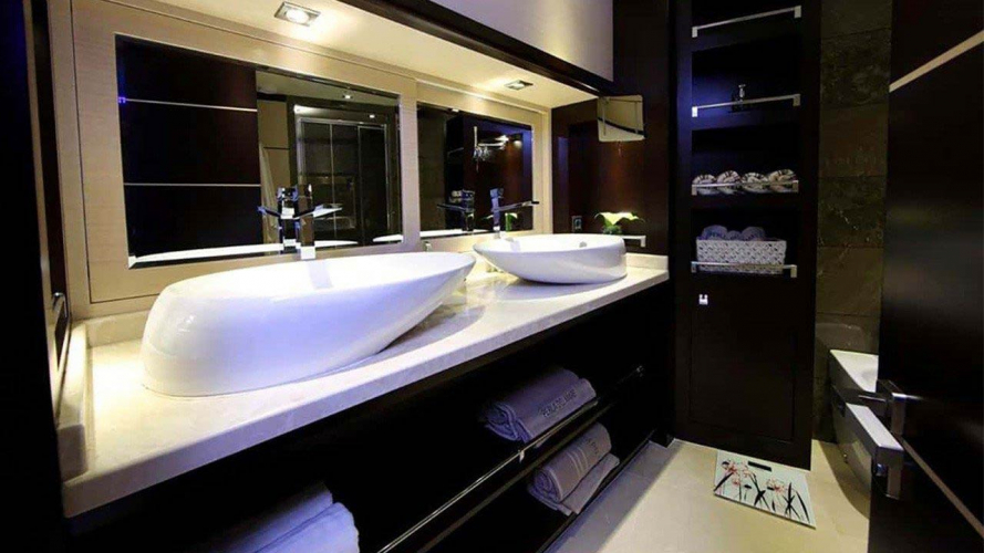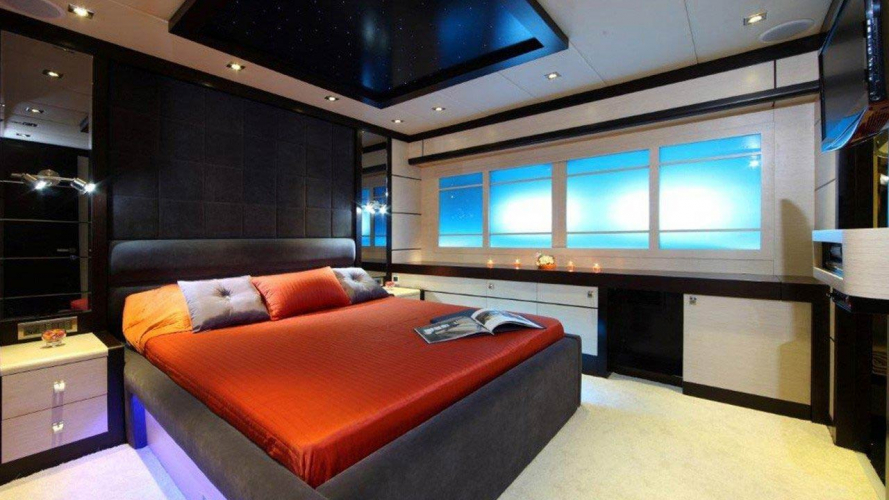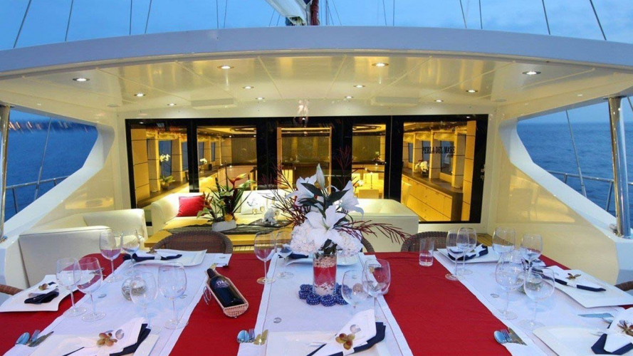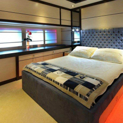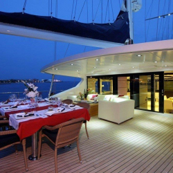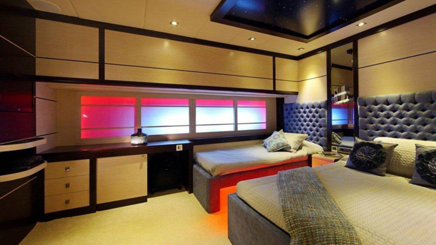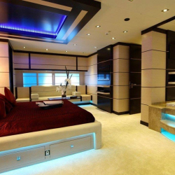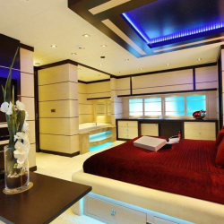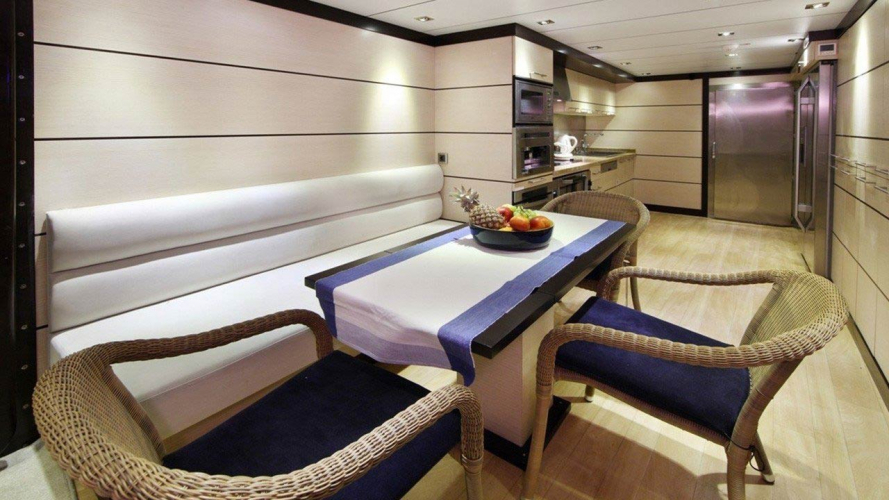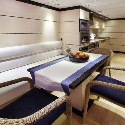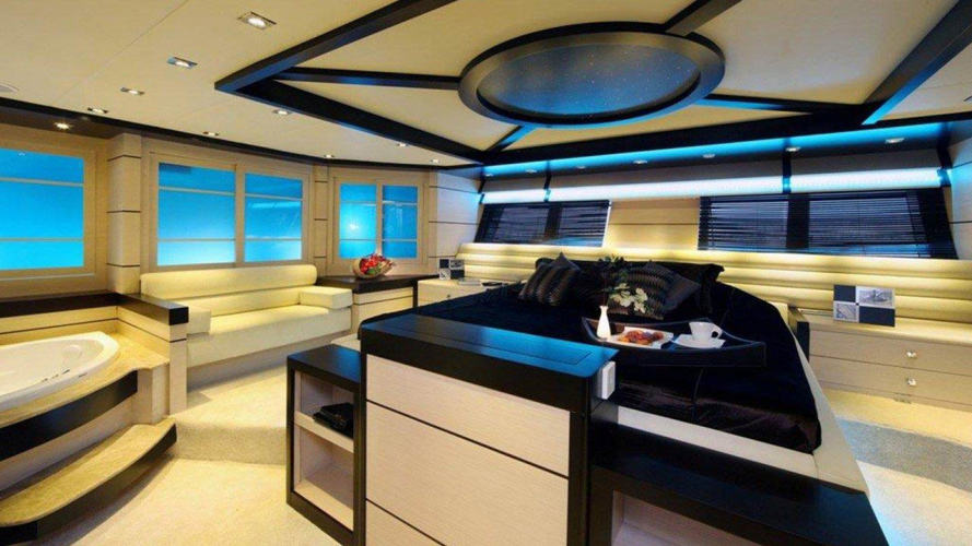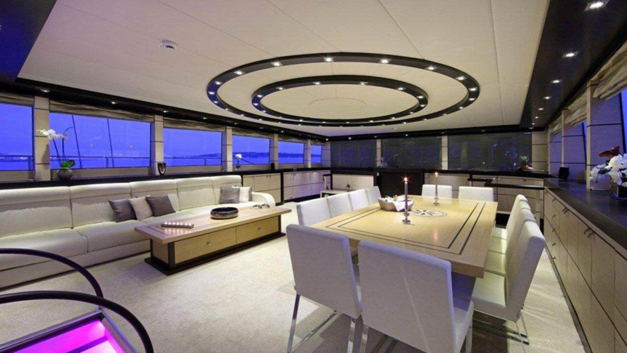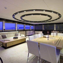 Es gibt separate Wohnbereiche für die Besatzung, eine voll ausgestattete Küche, Essbereiche im Innen- und Außenbereich, Entspannungsbereiche und eine amerikanische Bar.