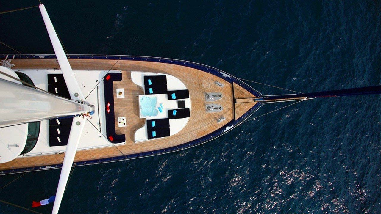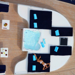 Für alle Gäste gibt es ausreichend Sonnenliegen, Stühle und Service-Sets. Diese Yacht, die unseren Blue Cruise Gästen Komfort, Luxus und Seelenfrieden bietet, erreicht 12 Seemeilen.