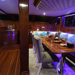 Die Queen Lila Gulet verfügt über eine voll ausgestattete separate Küche, einen Essbereich im Innen- und Außenbereich und eine klimatisierte Lounge.