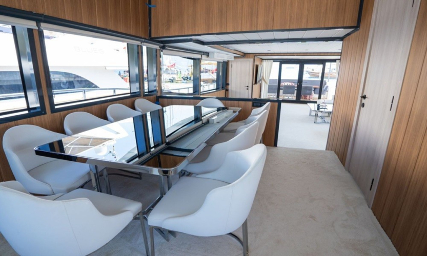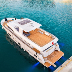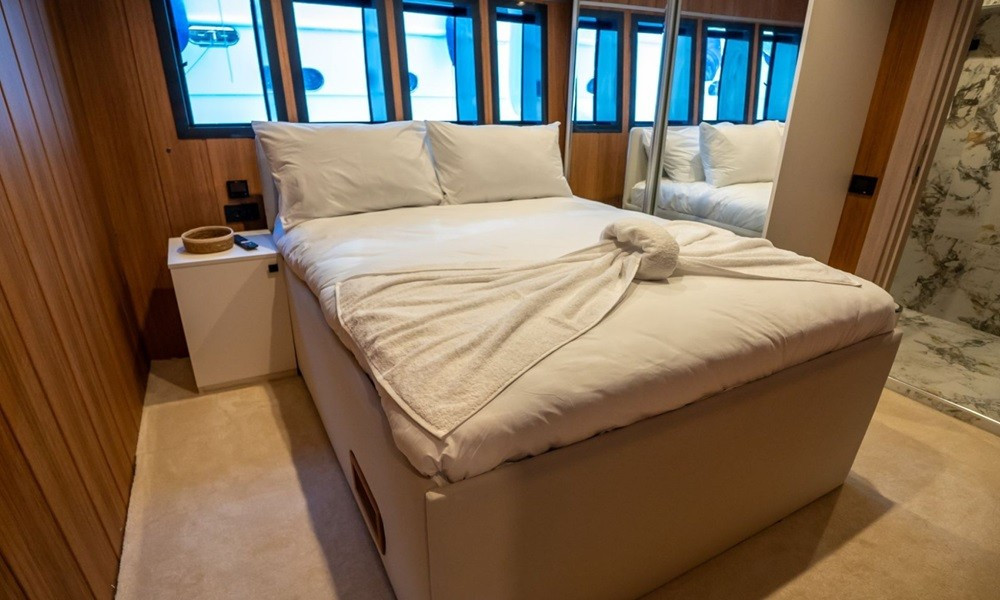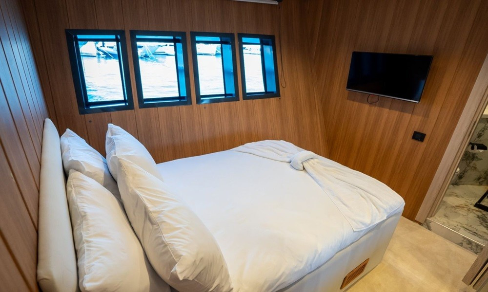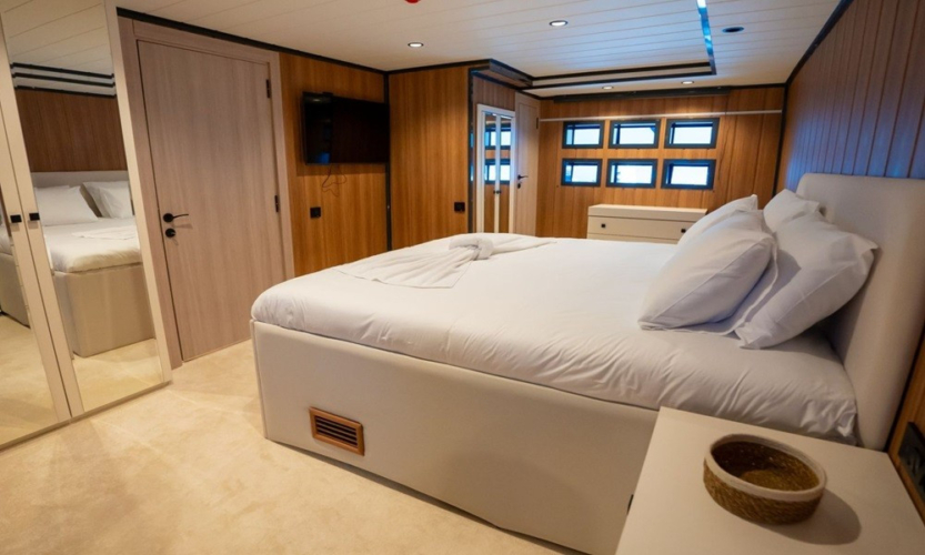 2024 model Almila Trawler, which attracts attention with its modern design, offers comfortable accommodation for up to 10 people with its 26-metre length and 5-cabin structure. With its jacuzzi, large deck areas and carefully selected equipment, it is a perfect blue cruise option for those who want to relax and have fun.