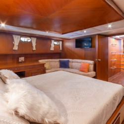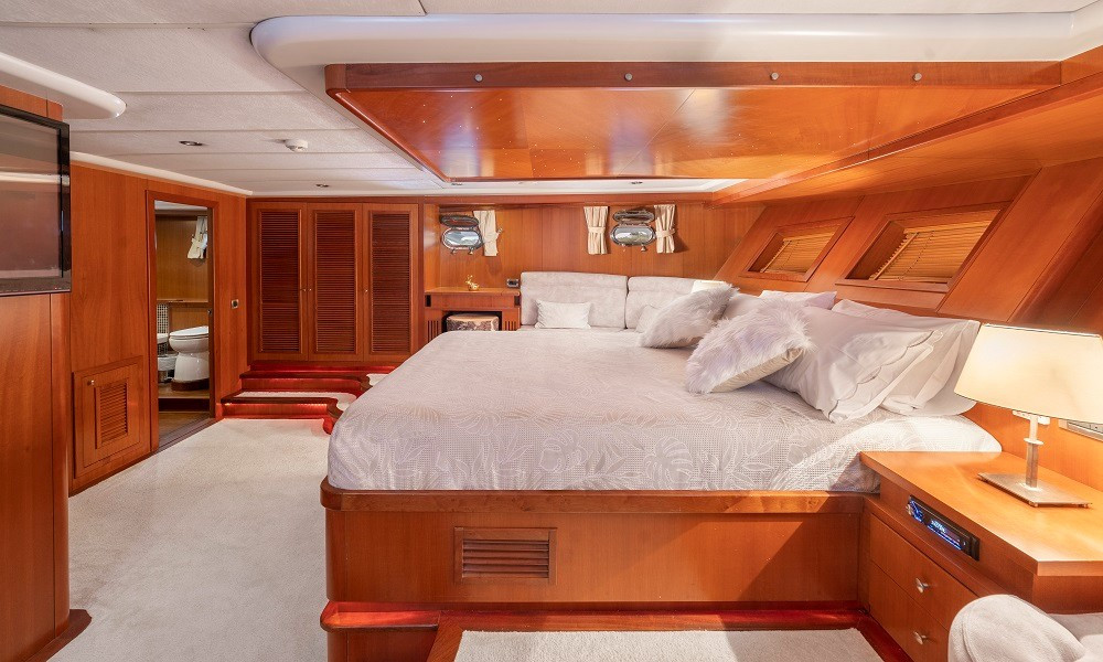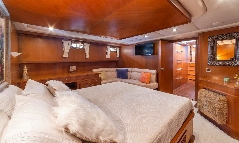 - 4 cabins: 2 master and 2 twin cabins for a total of 8 guests. Each cabin has private bathroom, air conditioning, television, music system and more.