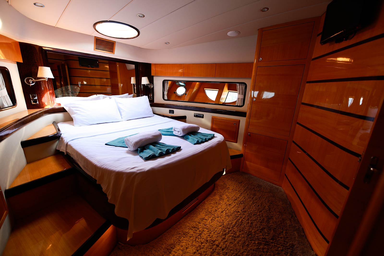 1 Master Cabin, 1 Vip Cabin, 2 Twin Cabins, stylish and comfortable, with its own shower, WC and air conditioning, our yacht has 4 cabins.
