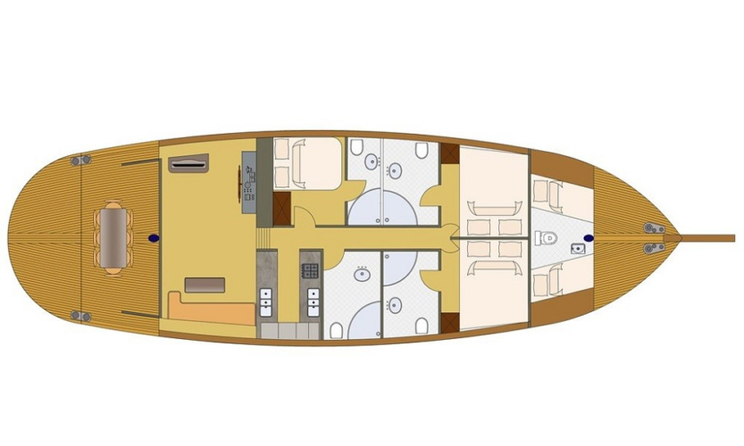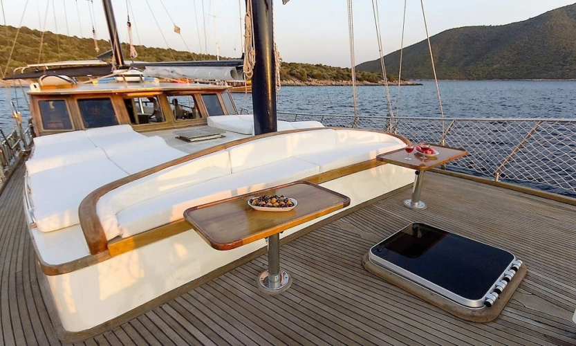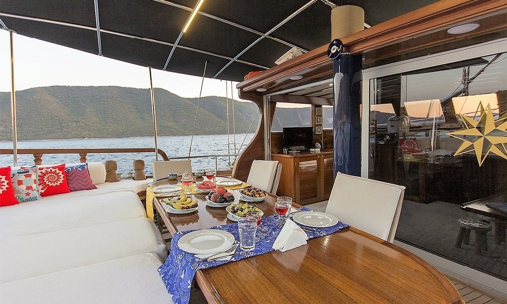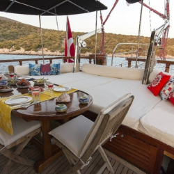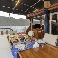 Cekin Gulet is a comfortable option for blue voyages departing from Gocek and Fethiye with its 19-metre length and 3 air-conditioned cabins. It offers a pleasant holiday opportunity for up to 6 people with its well-maintained structure and large deck.