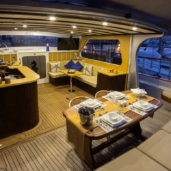 2 Cabins: 1 Master and 1 Twin cabin with a total capacity of 4 persons. Each cabin has TV, air conditioning, bathroom with shower cabin, WC, towels and hairdryer.