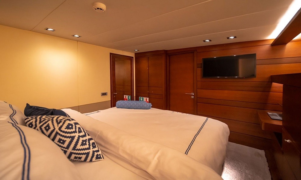 5 Cabins: 2 Master, 1 Double, 2 Twin. Air conditioning in all cabins, TV, music system, safe, bathroom with shower cabin, WC, hair dryer, bath and hand towels.