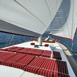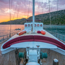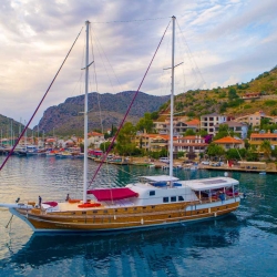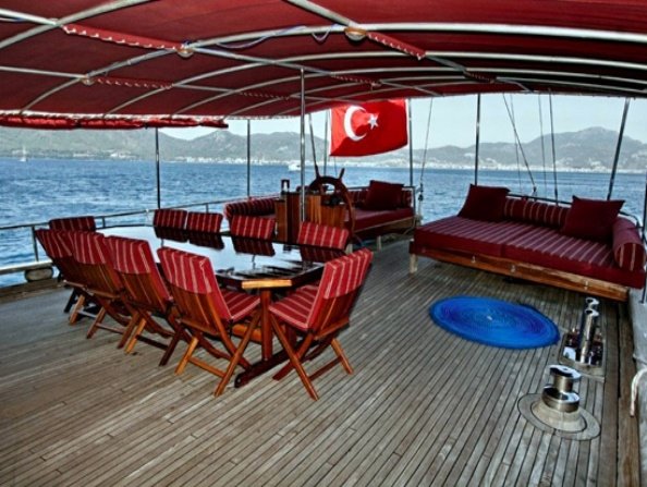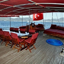 Hayalim D Gulet is a 32 metre long, high quality yacht built in 2006. Modern and spacious cabins, saloon and deck are specially designed for the comfort of the guests. 1 Master, 5 Triple cabins offer accommodation for up to 12 guests. Each cabin has a private shower and toilet and all cabins are air-conditioned.
