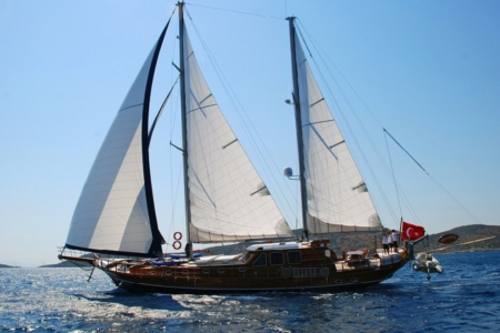Kaya Guneri Plus, 35 metres long, 7.45 metres wide super luxury yacht, can accommodate a total of 12 guests in 2 Master, 2 Double, 2 Triple cabins. All cabins and the entire yacht are equipped with air conditioning for a comfortable stay on hot summer days with private shower and WC facilities in each cabin. All cabins have TV, DVD and music system.