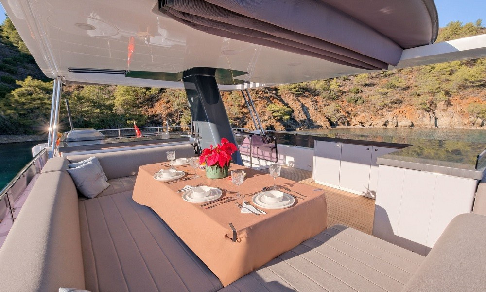 La Luna Motoryacht, which attracts attention with its 2023-made modern design, stands out in yacht charter options from Bodrum with its 20 metre length and 3 comfortable cabins. With its 6-passenger capacity, the motor yacht is ideal for families and groups of friends, offering luxury and peace of mind together on daily or weekly tours.