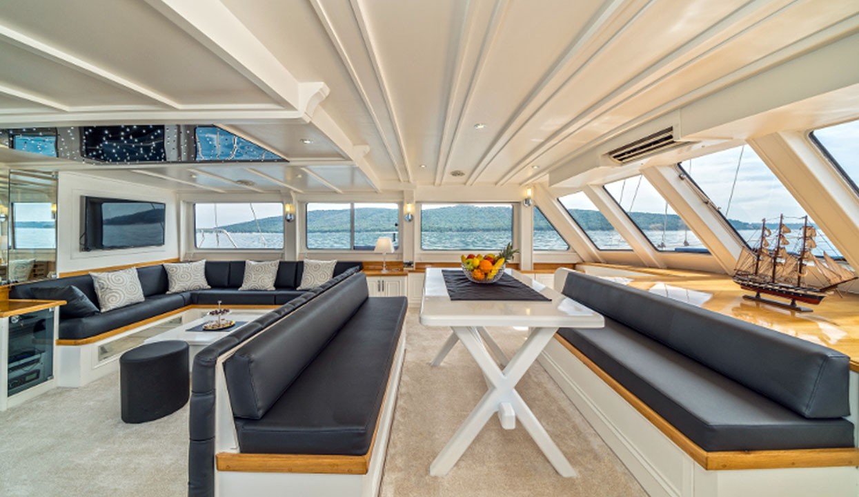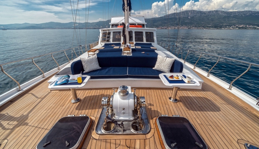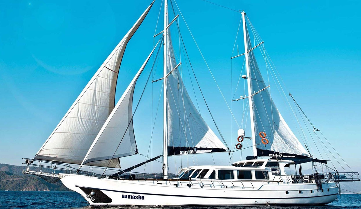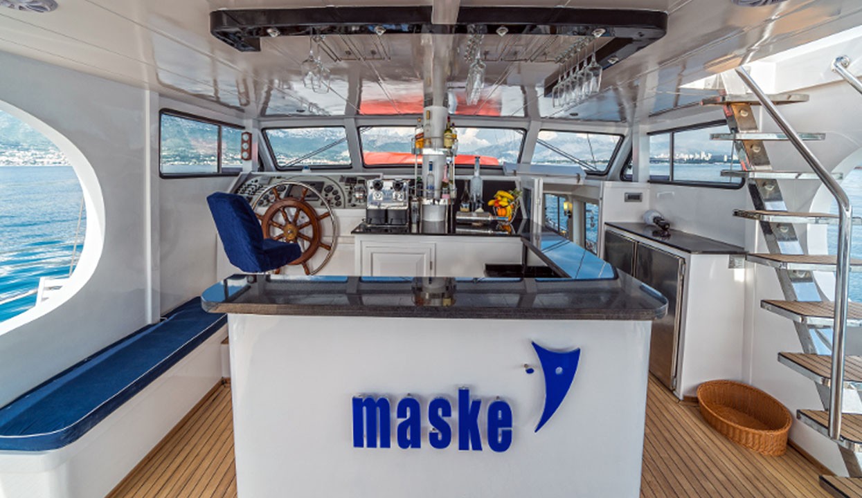 Charter Information: Maske 1 can be chartered in various regions of Turkey and Greek Islands. Charter fees may vary depending on the season and demand. For example, the weekly charter fee varies between €17,750 and €23,750. This fee covers fuel for the main engine and generators, all meals, drinks and crew services. As an extra, costs such as fuel for water sports equipment, special alcoholic drinks and harbour fees can be added.