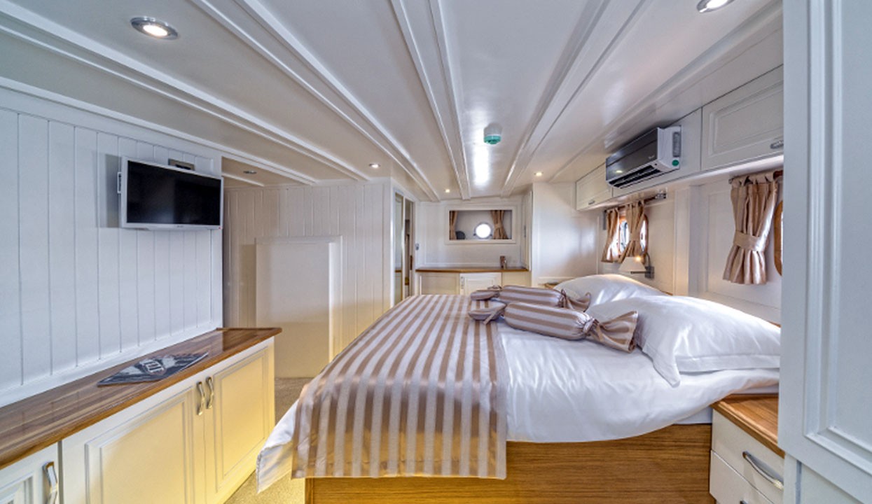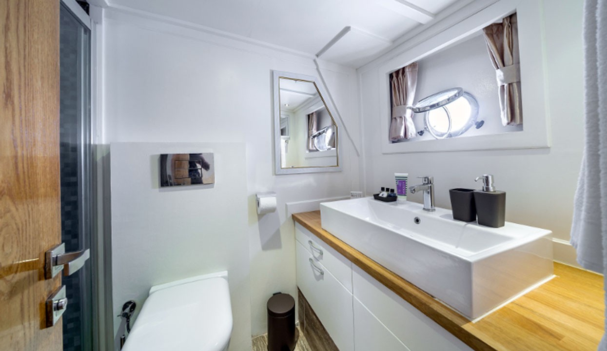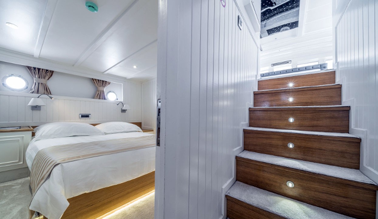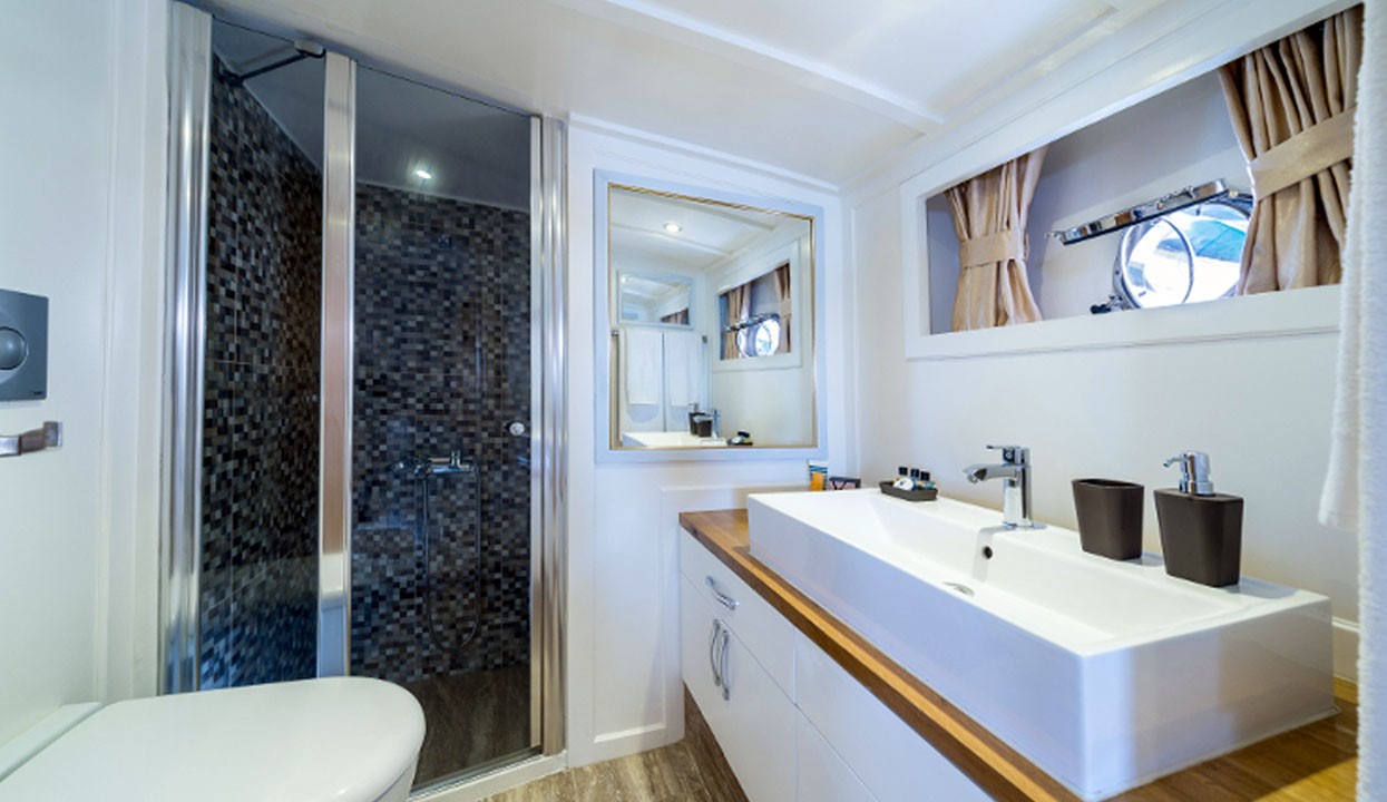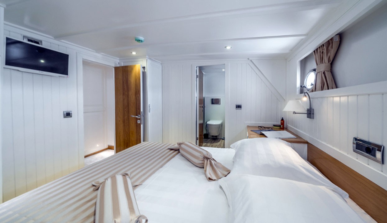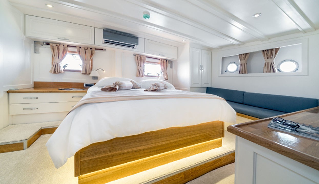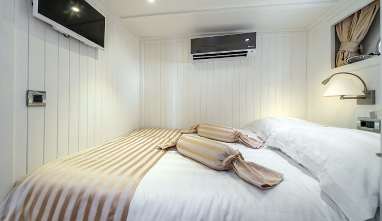 Maske 1 Gulet, 1 Master Cabin, 2 Vip Cabins, 2 Double Cabins, stylish and comfortable, with its own shower, WC and air conditioning, our yacht has 5 cabins.
