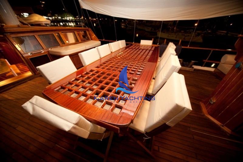 We can offer you full board accommodation during your holiday without your involvement. In this case, you can choose one of our Standard, Luxury or Deluxe menus and pay a price ranging from 45 to 65 Euros per person per day and have your all-inclusive holiday excluding alcoholic beverages. You can supply your alcoholic beverages as you wish and bring them to the boat.