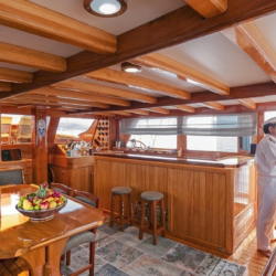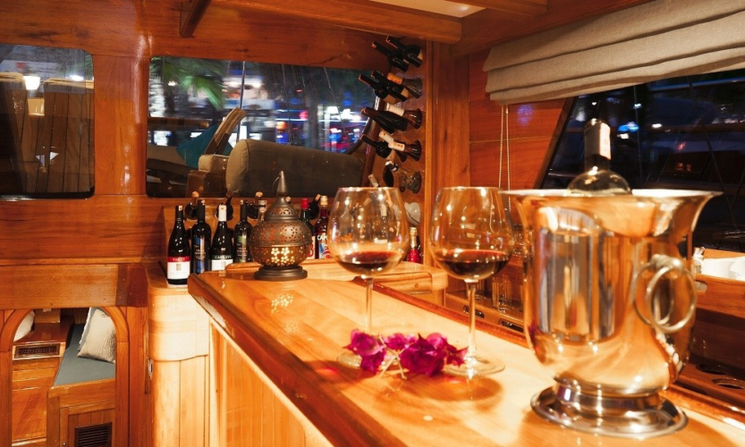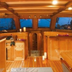 We can offer you full board accommodation during your holiday without your involvement. In this case, you can choose one of our Standard, Luxury or Deluxe menus and pay a price ranging from 45 to 65 Euros per person per day and have your all-inclusive holiday excluding alcoholic beverages. You can supply your alcoholic beverages as you wish and bring them to the boat.