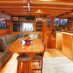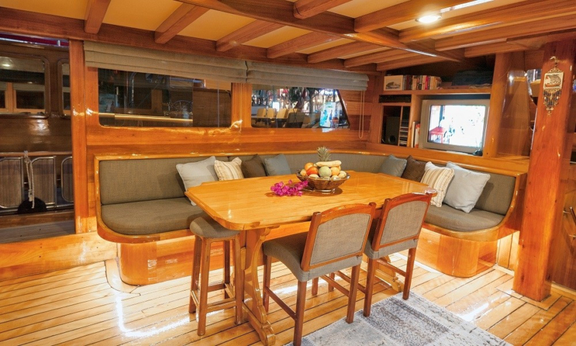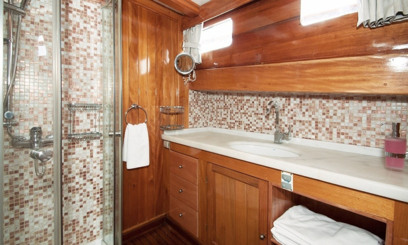 Nikola Gulet has a total capacity of 8 people with 1 master and 3 double cabins, all cabins have air conditioning, private bathroom, electric toilet, hair dryer and towel set. Comfort is at the forefront with a seating group, dining table, bar and music system in the lounge. The air conditioner can be used 4-6 hours a day.