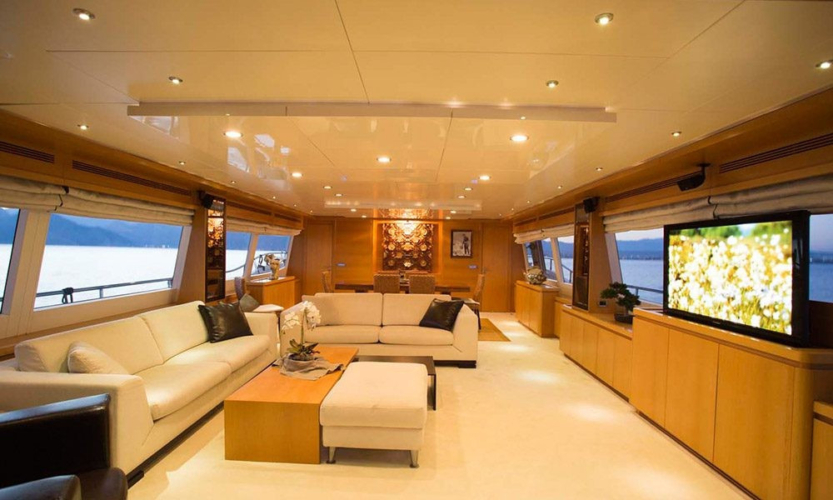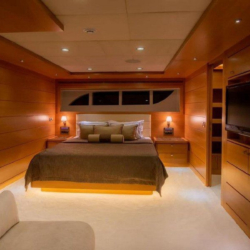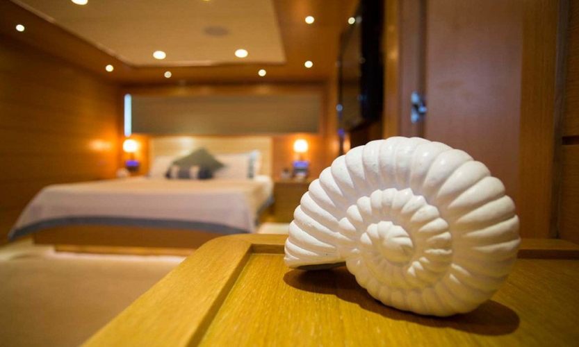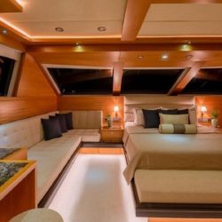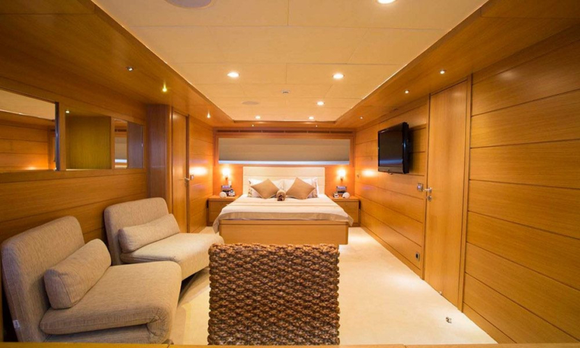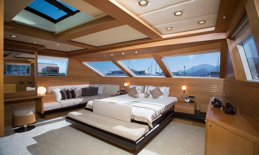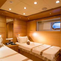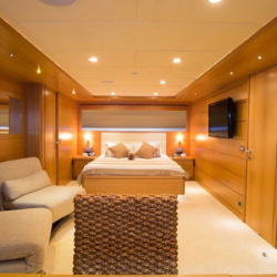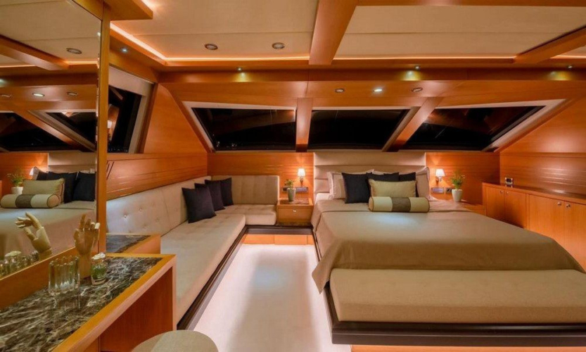 Consisting of 2 master, 2 double and 1 twin cabin, Panfeliss Motor Yacht combines luxury and comfort with its spacious interior design and large decks. Large windows on each deck let in maximum natural light, while the warm colour palette and high-quality finishes give the living spaces an elegant atmosphere.
