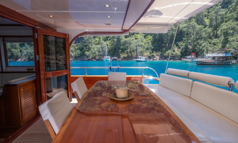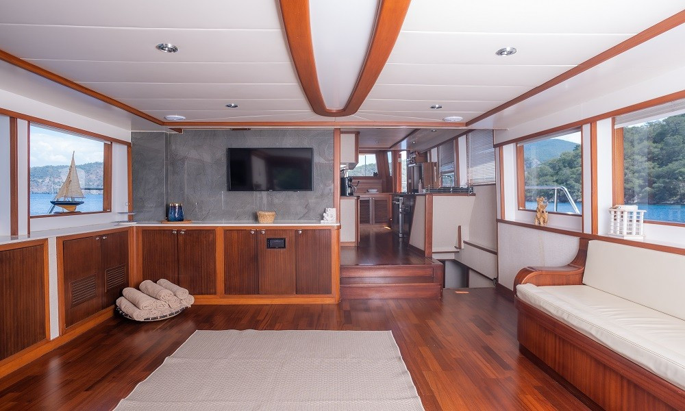 The 20 metre long Trawler Ruzanna offers accommodation capacity for 9 people with 4 spacious cabins. With its well-maintained structure, comfortable living areas and friendly crew, it is an ideal choice for your blue voyages departing from Göcek and Fethiye.