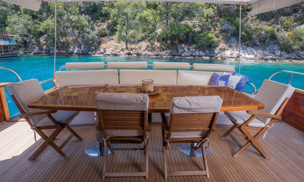 We can offer you full board accommodation during your holiday without your involvement. In this case, you can choose one of our Standard, Luxury or Deluxe menus and pay a price ranging from 45 to 65 Euros per person per day and have your all-inclusive holiday excluding alcoholic beverages. You can supply your alcoholic beverages as you wish and bring them to the boat.