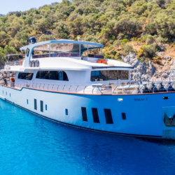 Simay F Trawler Motoryacht was built in 2015. 28 m in length and 6.70 m in width, the boat provides blue cruise services to our valued guests with 5 staff.