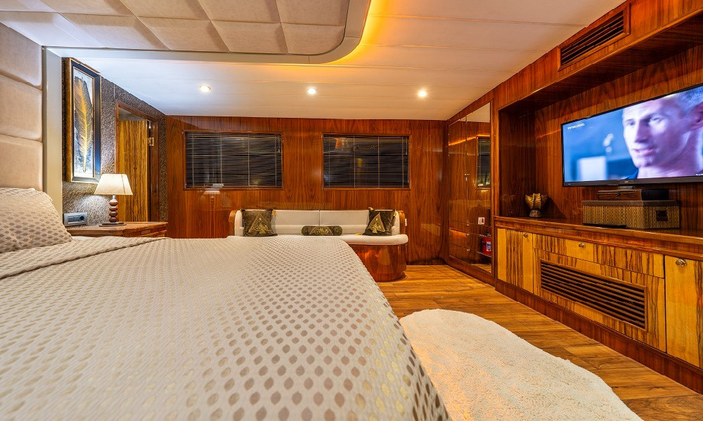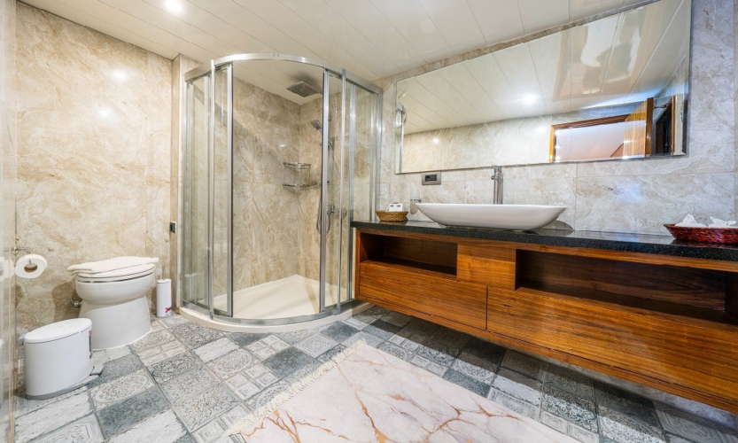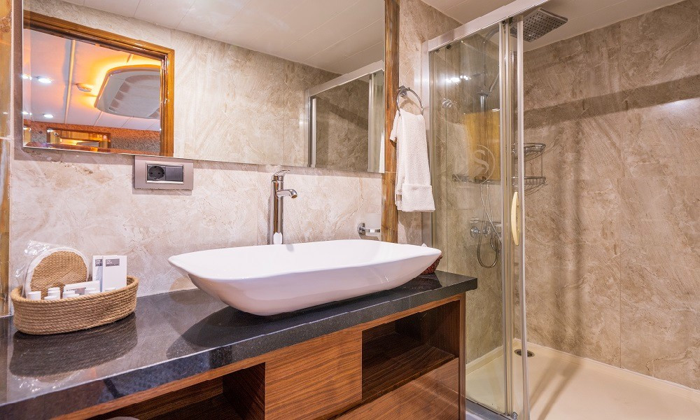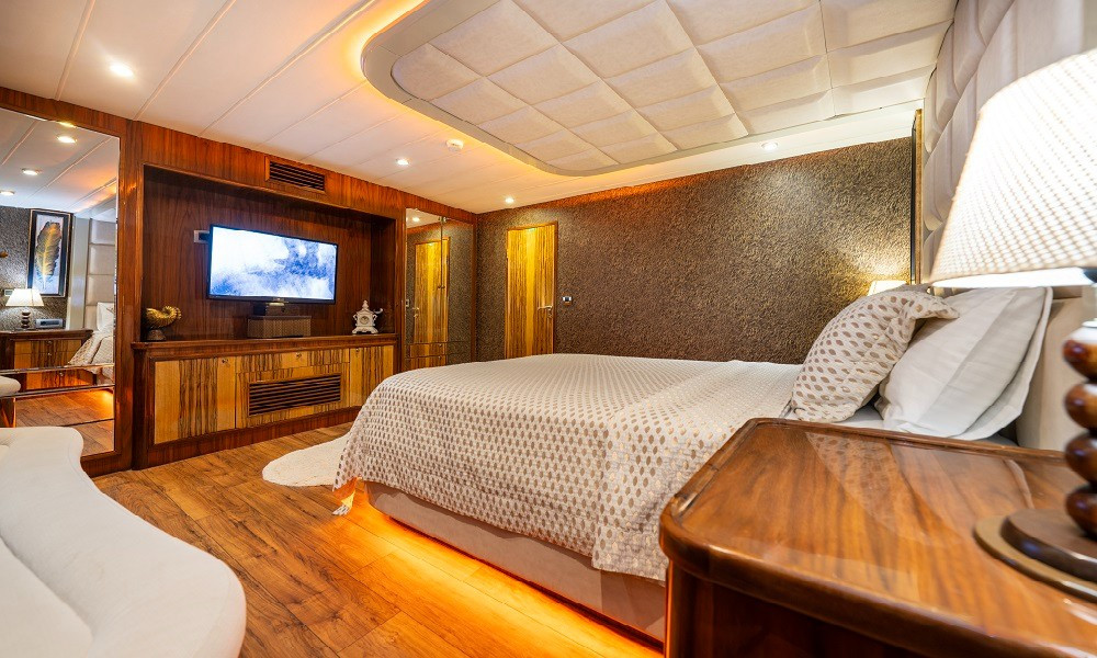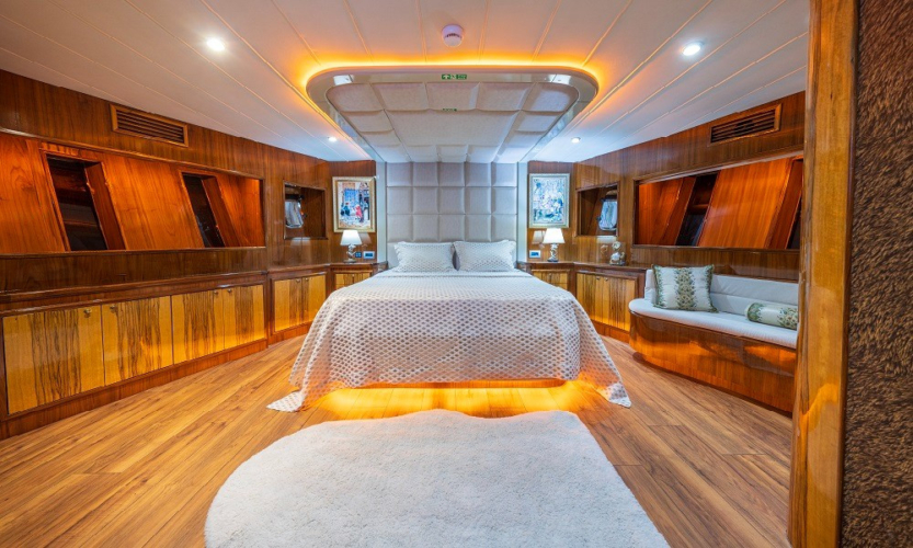 Simay F Trawler Motoryacht, 1 Master Cabin, 1 Vip Cabin, 2 Double Cabins, stylish and comfortable, with its own shower, WC and air conditioning, our yacht has 4 cabins.