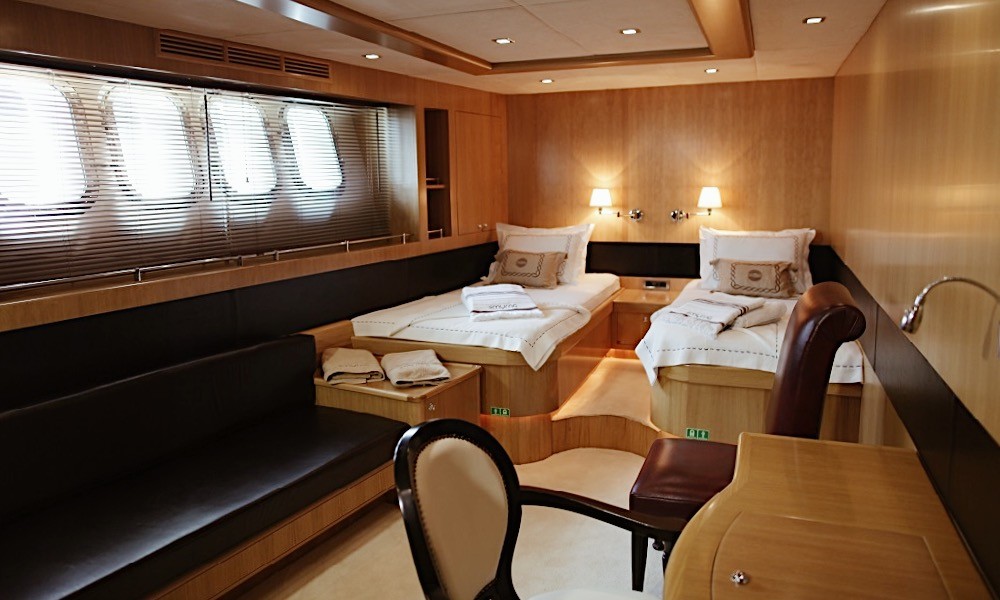 Smyrna Motor Yacht has 5 cabins, 1 Master Cabin, 2 Vip Cabins, 2 Twin Cabins, stylish and comfortable, with its own shower, WC and air conditioning.