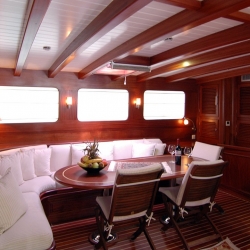 Zephyria 2 gulet was built in 2007. In 2015, with the renovation it underwent, it has taken its final form today. 34,5 m in length and 7,8 m in width, the boat provides blue cruise services to our valued guests with 4 staff.